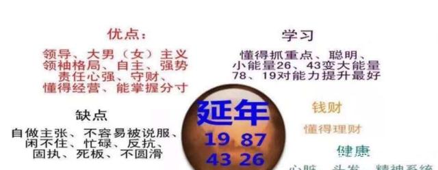 延年星对应的数字组合是19,91/78,87/34,43/26,62/26,能量从左到右依次递减。